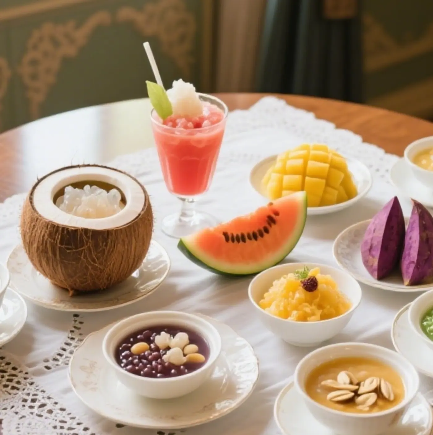 ▸ 現榨西瓜汁清甜透心,沙冰細膩沁涼;楊枝甘露酸甜爆珠,盛夏就該這樣冰甜交織!